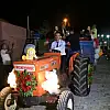 Traktörün römorkunu balonlarla süsleyen damat Emrah Meydan gelin Tuğba Meydan davulcular ve sağdıçlarla birlikte ilçe meydanında konvoylar eşliğinde düğün salonuna geldi.