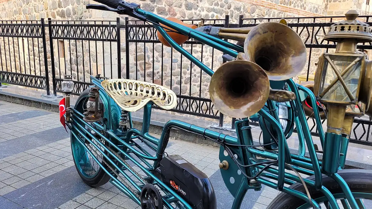 "Bisikletin üzerinde kornalarımız var, yurt dışından geldi. Fayton fenerimiz var. Koltuk aslında bir bar tabıresi. Onu da Antalya'daki bir arkadaşım hediye etti. Çoğunluğu hediye yani"