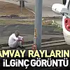 Samsun'da tramvay hattının geçtiği üst geçide çıkan şahıs, rayların üzerinde müzik dinlerken görüntülendi. Durumu fark eden vatman, kazaya sebep olmamak için treni durdurarak şahsı tramvaya aldı.