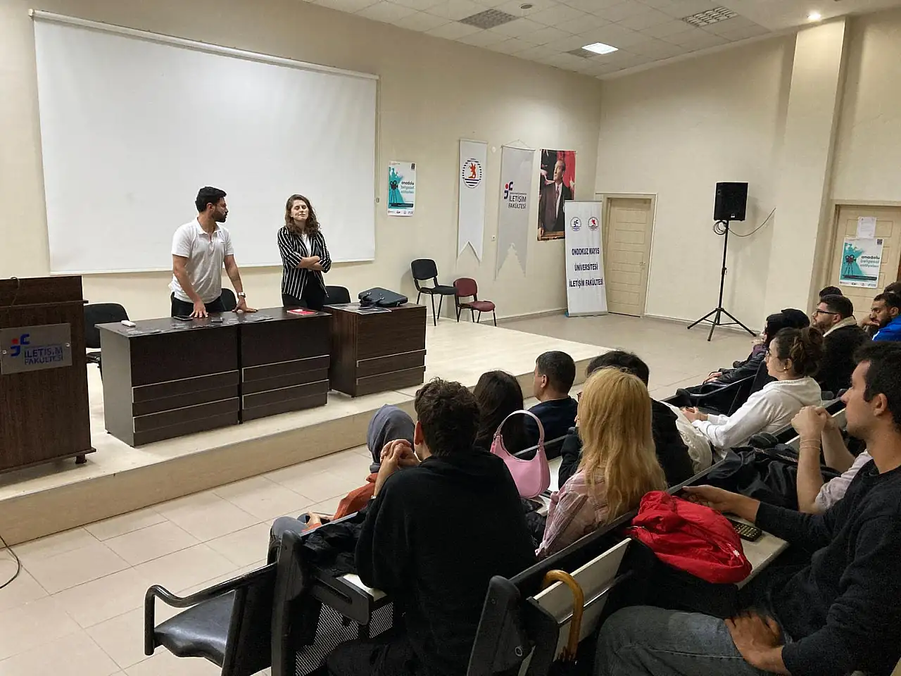 TRT Ankara İç Yapımlar Daire Başkanlığında Yardımcı Yönetmen olarak görev yapan Akasya Galiba ve Mehmet Seha Bayram, fakültenin konferans salonunda öğrencilerle bir araya gelerek bilgilendirme toplantısı gerçekleştirdi.