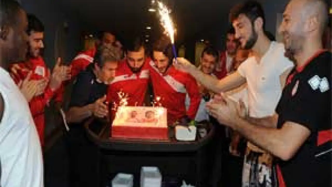 Samsunspor'un tecrübeli oyuncuları Turgay Gölbaşı ve Erdem Şen'e kampta sürpriz yaş günü yapıldı.