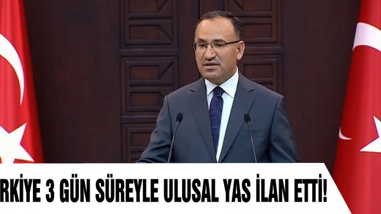 Başbakan Yardımcısı Bekir Bozdağ, 'Kudüs'te yaşanan saldırılar ve bu saldırılar sonrası yaşanan katliam nedeniyle Filistinlilerle dayanışma içerisinde olmak, şehitleri saygı ile anmak maksadıyla 3 gün süre ile yas ilan edilmesine karar verilmiştir' dedi