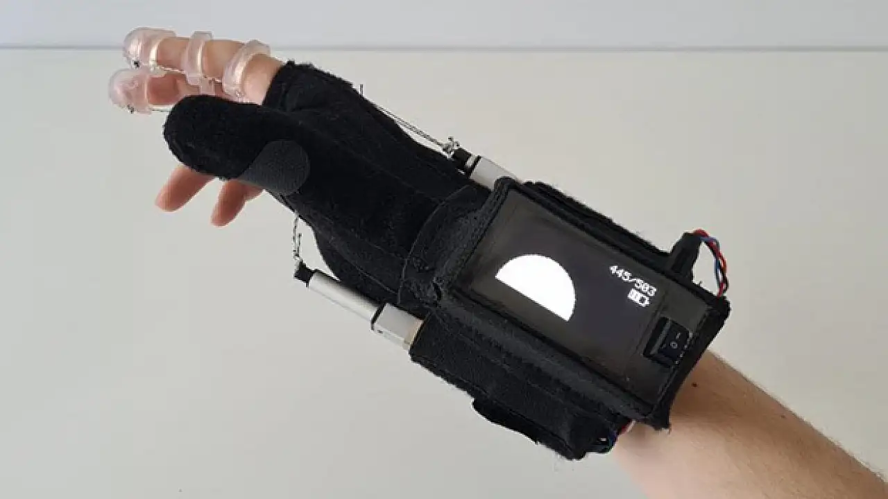 Bursa Uludağ Üniversitesi (BUÜ) Tıp Fakültesi öğrencisi İsmail Emir Yassı ile Translasyonel Tıp Ana Bilim Dalı Kurucu Başkanı Prof. Dr. Şehime Gülsün Temel'in ürettiği giyilebilir destek ve rehabilitasyon cihazı, el ile kavrama fonksiyonunu yitiren hastalara destek sağlıyor.