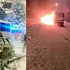 Yangın ve otomobilin yakıt deposunun patlama anı ise bir vatandaşın cep telefonu kamerasına anbean yansıdı.