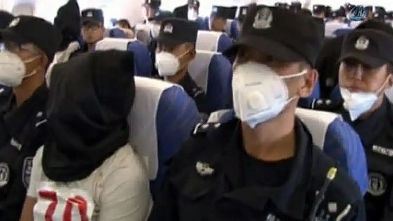 9 Temmuz tarihinde Tayland’dan Çin’e iade edilen 115 Uygur Türkü’nün Çin’e iade edildiği sırada çekilen görüntüler Çin Devlet Televizyonu CCTV’de yayınlandı. Yayınlanan görüntülerde uçakta bulunan Uygur Türklerinin başlarına çuval geçirildiği, ellerinin arkadan kelepçelendiği ve göğüslerine numara yapıştırıldığı görülüyor. Uçaktaki 3’lü koltuğun ortasına oturtulan Uygur Türklerinin iki yanına Çinli özel harekat polislerinin yüzlerine taktıkları steril maskelerle oturduğu görülüyor. Ayaklarının çıplak olduğu görülen Uygur Türklerine Çin’in uyguladığı bu muamele büyük tepki gördü.