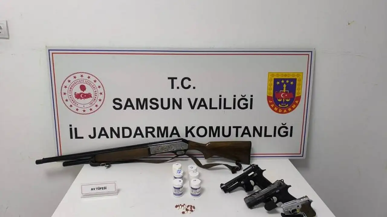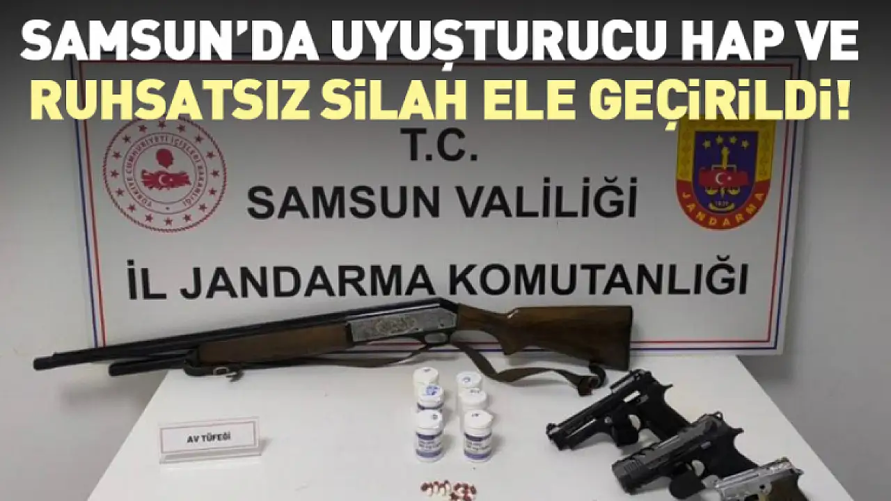 Samsun'da jandarma ekipleri tarafından düzenlenen operasyonunda uyuşturucu hap ve silah ele geçirildi.