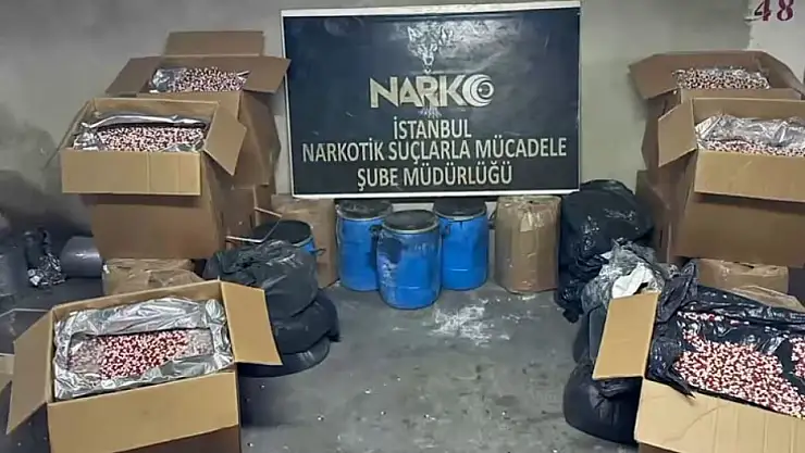 İstanbul'un Sancaktepe ilçesinde düzenlenen uyuşturucu operasyonunda 2 milyon 760 bin adet uyuşturucu hap, 314,7 kilogram katkı maddesi ile uyuşturucu üretiminde kullanılan malzemeler ele geçirildi, 2 şüpheli yakalandı.