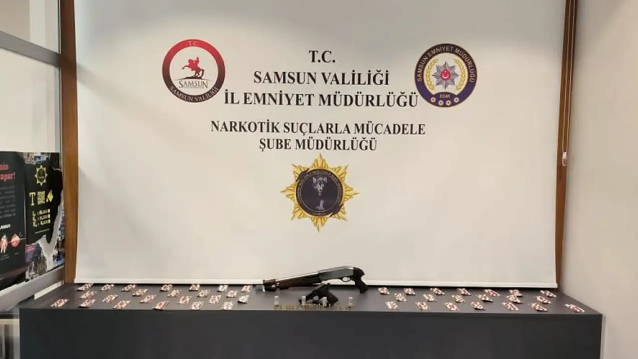 Samsun İl Emniyet Müdürlüğü ekipleri tarafından, uyuşturucu madde ticareti, nakli veya depolanması faaliyetlerini yürüten şahısların yakalanmasına yönelik Atakum ilçesinde 3 ikamete operasyon düzenlendi. Yapılan operasyonda bin 430 adet sentetik ecza, 1 adet ruhsatsız tabanca, 1 adet pompalı tüfek, 43 adet tabanca fişeği, 4 adet tüfek kartuşu ve uyuşturucu satışından elde edildiği değerlendirilen 11 bin 400 TL ele geçirildi. Operasyonda E.K, E.E. ve A.A. isimli 3 şahıs yakalanarak gözaltına alındı ve haklarında adli işlem başlatıldı.