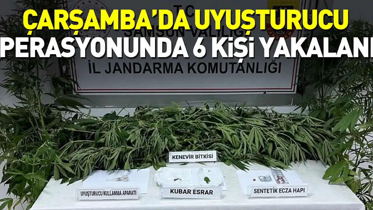 Alınan bilgiye göre, Çarşamba Cumhuriyet Başsavcılığı koordinesinde İlçe Jandarma Komutanlığı ve JASAT Timi ekiplerince F.K, E.K, O.K, Ö.B. B.K. ile eşi C.K'nin ev ve eklentilerinde yapılan aramada 14 kök kenevir bitkisi, 0,15 gram kenevir tohumu, 0,71 gram kubar esrar, 9 sentetik ecza hapı ve uyuşturucu kullanma aparatı ele geçirildi.