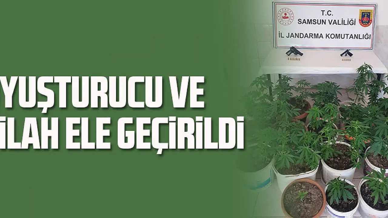 Samsun'un Bafra ilçesinde bir evde yapılan aramada saksıya dikili 30 kök kenevir bitkisi ve 2 adet ruhsatsız tabanca ele geçirildi.
