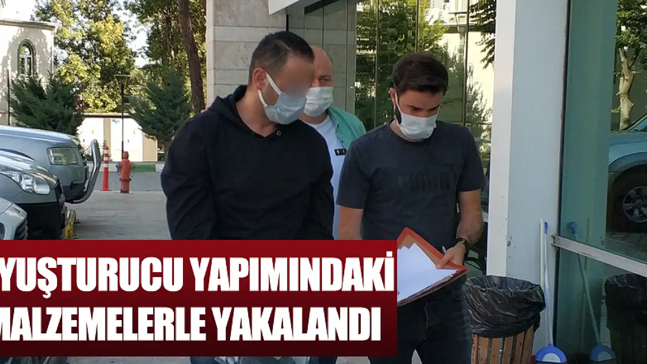 Uyuşturucu yapımında kullanılan malzemelerle yakalandı