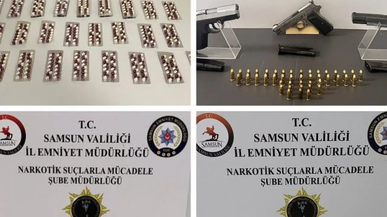 Samsun'da polis tarafından düzenlenen uyuşturucu uygulamasında 19 kişi yakalandı. Alınan bilgilere göre, Samsun İl Emniyet Müdürlüğü ekipleri tarafından İlkadım, Atakum ve Canik ilçelerinin farklı mahallelerinde şüpheli 17 şahsın üzerlerinde, araçlarında ve ikametlerinde arama yapıldı. Yapılan aramalarda 646 adet sentetik ecza, 7,80 gram metamfetamin, 7,42 gram sentetik kannabinoid, 5,33 gram esrar, 4 adet uyuşturucu kullanım aparatı, 3 adet ruhsatsız tabanca, 1 adet ruhsatsız pompalı tüfek, 66 adet tabanca fişeği ve 3 adet tüfek kartuşu ele geçirildi. Olayla ilgili 17 kişi yakalandı.