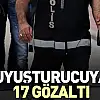 Edinilen bilgiye göre, Samsun Emniyet Müdürlüğü Narkotik Suçlarla Mücadele Şube Müdürlüğü ekipleri, ilçe emniyet müdürlükleri ve şube müdürlüklerinin de desteğiyle uyuşturucu uygulaması düzenledi. Yapılan aramalarda, 261,46 gram esrar, 221,21 gram sentetik kannabinoid (bonzai), 121 adet sentetik ecza, 23 kök kenevir bitkisi, 4,50 gram metamfetamin, 25,5 gram skunk, 5 adet uyuşturucu kullanım aparatı ve 1 adet hassas terazi ele geçirildi. "Uyuşturucu madde kullanmak" suçundan, 3 yıl 4 ay kesinleşmiş hapis cezası bulunan 1 şahıs, 2 yıl kesinleşmiş hapis cezası bulunan 1 şahıs, olmak üzere 2 aranan şahıs olmak üzere toplam 17 kişi yakalandı.