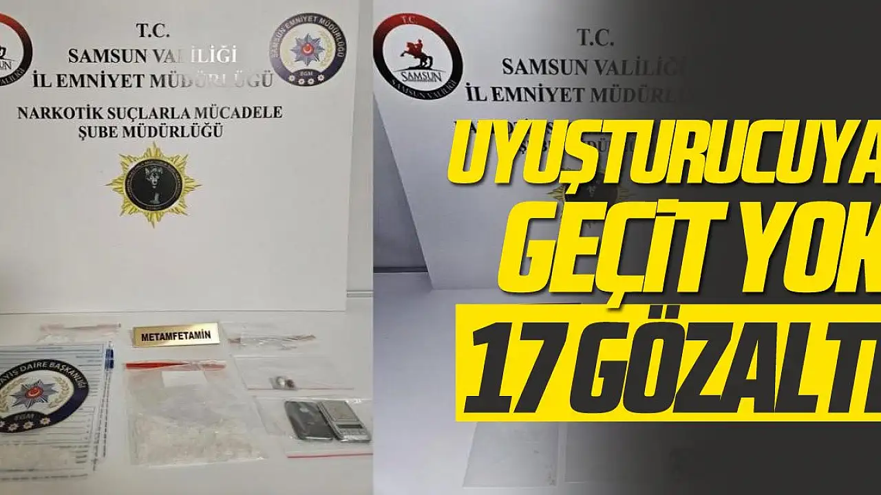 Samsun İl Emniyet Müdürlüğü ekiplerince yapılan çalışmalarda 227 gram metamfetamin ve çok miktarda uyuşturucu madde ele geçirilirken, 17 kişi de gözaltına alındı