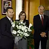 Bölge Müdürü Öztürk, Vali Aksoy'a çiçek ve koruma altındaki eserlerin fotoğraflarının yer aldığı tanıtım kitabı hediye etti.-İHA