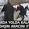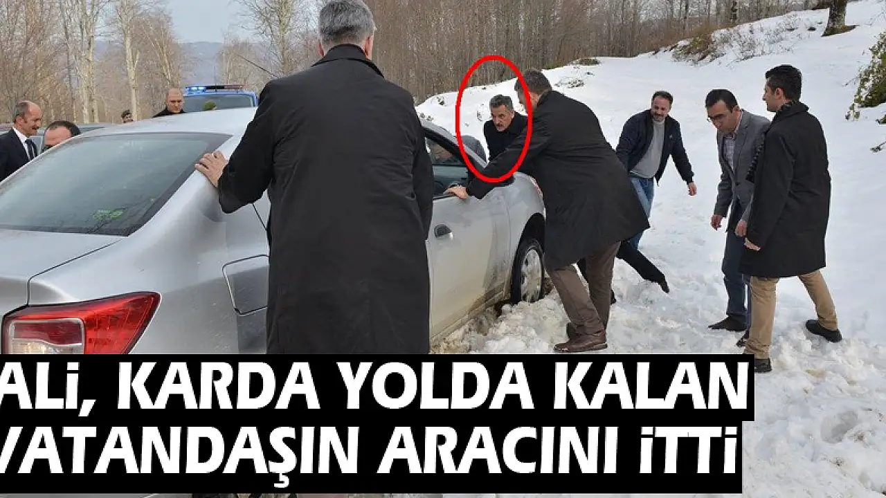 Samsun Valisi Osman Kaymak, karda yolda kalan vatandaşın otomobilini iterek kurtarılmasına yardımcı oldu.