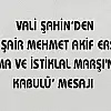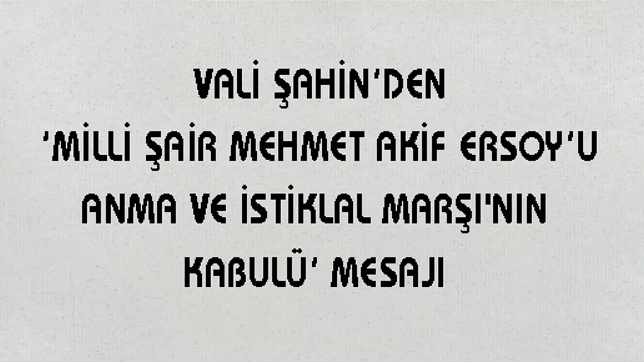 - VALİ ŞAHİN'DEN 'MİLLİ ŞAİR MEHMET AKİF ERSOY'U ANMA VE İSTİKLAL MARŞI'NIN KABULÜ' MESAJI