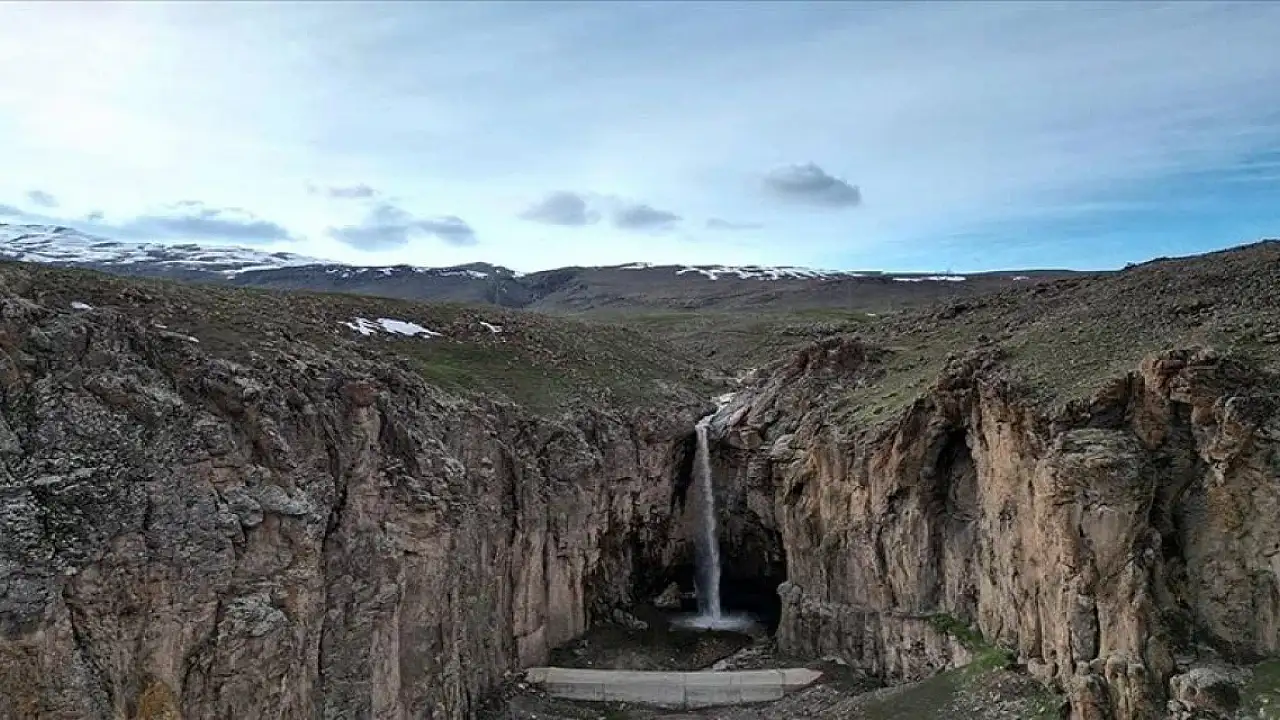 Van'ın Muradiye ilçesinde kuraklık nedeniyle yaz döneminde kuruyan Yaşar Kemal Şelalesi, karların erimesiyle yeniden akmaya başladı.
