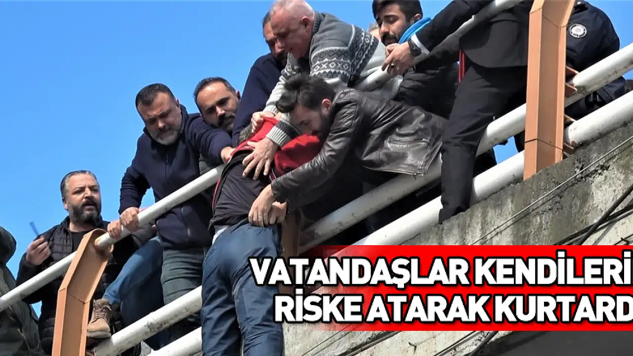 Samsun'da eşinden boşanan ve üst geçitte boynuna halat geçirip korkuluklarda intihara kalkışan 3 çocuk babası şahıs, kendilerini riske atan polis ve vatandaşlar tarafından güçlükle kurtarıldı