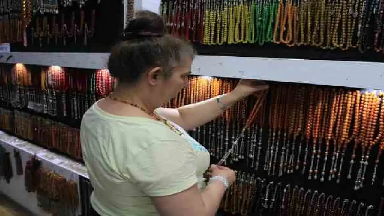 Tespih, kolye, bileklik, yüzük gibi kehribar taşı ürünlerini vatandaşların yanlarında bulundurmalarının faydalı olabileceğini belirten doğal taş satıcısı Sevcan Merdoğan, kullanıma bağlı olarak taşın etkisinin değişebileceğini söyledi. Kehribar hakkında bilgiler veren Merdoğan, “Vatandaşlar kehribar hakkında şuurlanmaya başladı. Kehribarın faydalarını öğrendikleri için ilgi yoğun oluyor. Bu ilgiden memnunuz. Baltık damlasının faydaları arasında astım, troid, guatr hastalıklarının tedavisi, bebeklerde diş çıkarma, kişiyi nazara karşı koruma ve sakinleştirme vardır. Kaza geçirenler de kullanabiliyor. Sağlık her zaman önce gelir. Bu taşı denemek lazım. Taşlarda en son nokta kehribardır. Kehribar ne kadar yoğun kullanılırsa etkisini o kadar çok gösterir. Az kullanılırsa etkisi az olur. Kehribar ürünleri gece gündüz insanda bulunabilir. Sabahtan akşama kadar takılabilir gece çıkarılabilir. Elektrik boşaltım olayı da olmaz. Kolye, bileklik, yüzük gibi ürün ne kadar çok olursa etkisi de artar” diye konuştu.