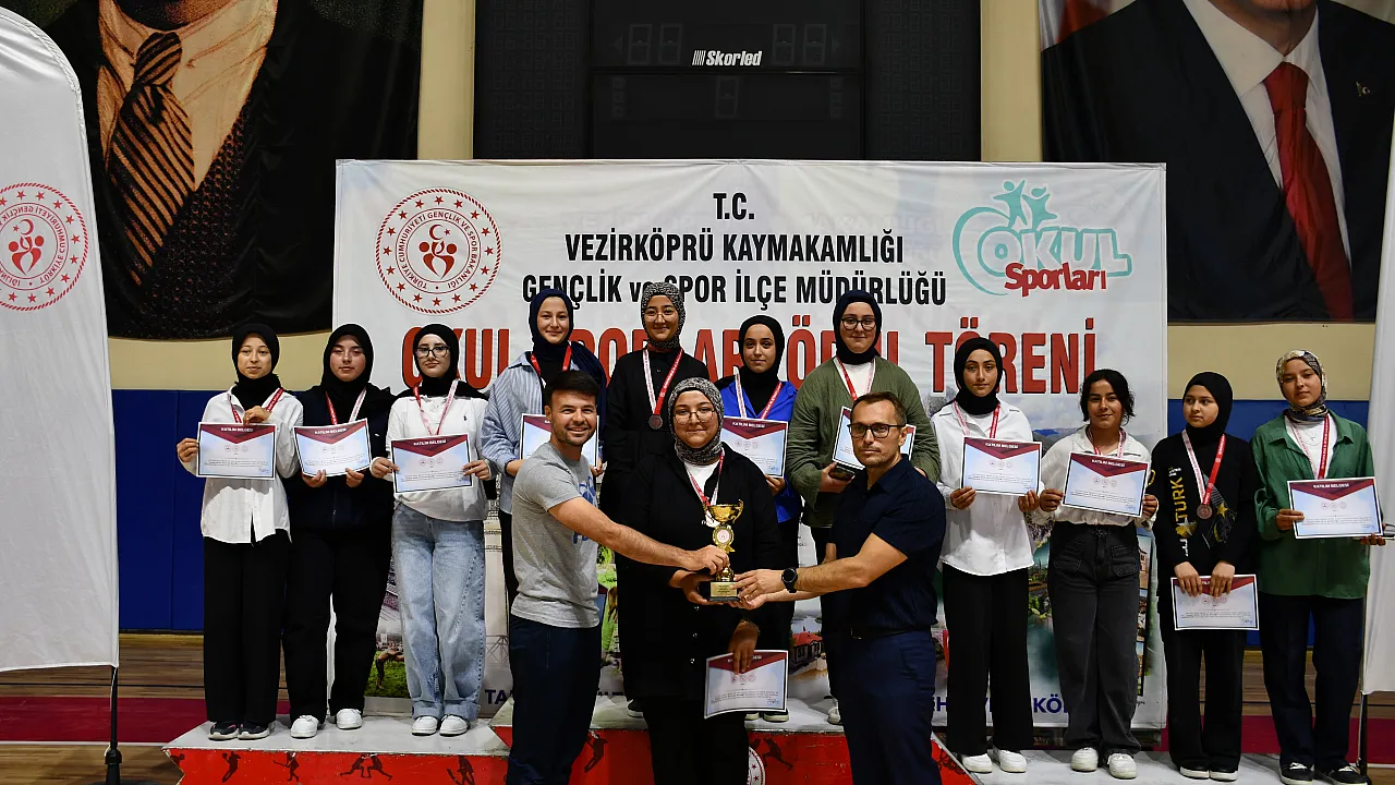 Vezirköprü ilçesinde 2024-2025 eğitim-öğretim yılı kapsamında düzenlenen okul sporlarında dereceye giren öğrenciler için ödül töreni düzenlendi.