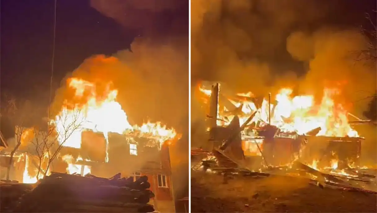 Yangın sonucu iki ahşap ev tamamen yanarak kullanılamaz hale geldi. Olayla ilgili inceleme başlatıldı.