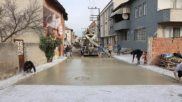 Vezirköprü belediyesi ekipleri, bazı mahallelerde baskı beton çalışmasına başladı.