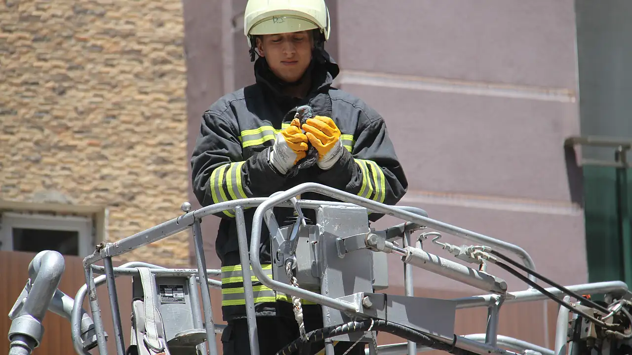 Olay, Dalyan Mahallesi, Şehit İbrahimbey Caddesi üzerinde bulunan 4 katlı bir apartmanın üçüncü katında meydana geldi. Alınan bilgiye göre, pencerenin korkuluk boşluğunda çırpınan bir yaban güvercini olduğunu gören çevre sakinlerinin ihbarı üzerine adrese itfaiye ve polis ekipleri sevk edildi. Güneşin altında sıcaktan etkilenen güvercini bulunduğu yerden çıkarıp telef olmaması için seferber olan itfaiye ekipleri, daire sahibinin evde olmaması üzerine üçüncü kata merdiven uzattı. İtfaiye erinin uzatılan merdiven aracılığıyla ulaştığı güvercin sıkıştığı boşluktan çıkarılarak aşağıya indirildi. Uçamadığı fark edilen yaban güvercininin itfaiye görevlilerince tedavi edilmek üzere milli parklar ekiplerine teslim edileceği belirtildi.