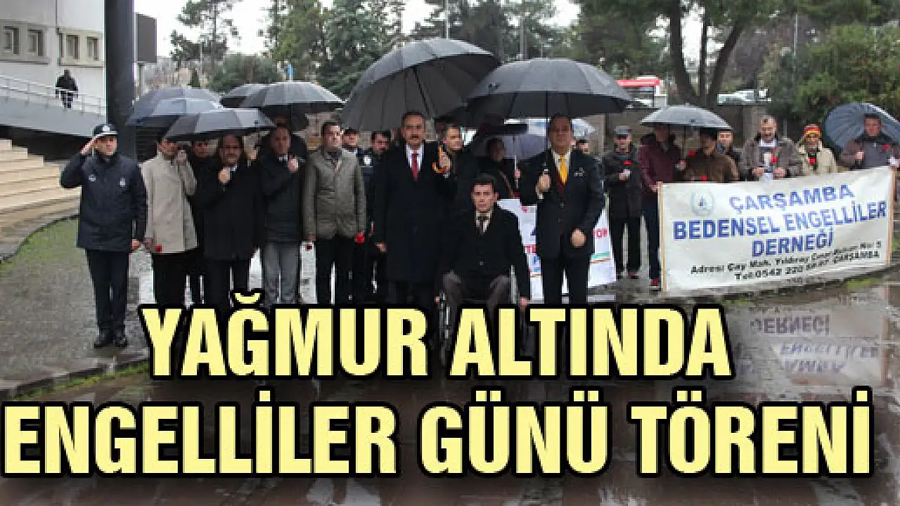 3 Aralık Dünya Engelliler Günü münasebetiyle Samsun'un Çarşamba İlçesi'nde etkili olan yağışa rağmen Belediye Meydanı'nda tören gerçekleştirildi