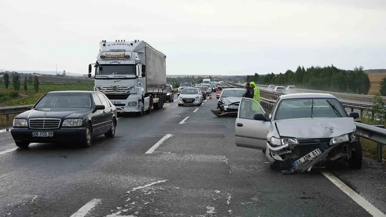 Kırıkkale'de yağmur sebebiyle kayganlaşan yolda üç araçlı zincirleme trafik kazası meydana geldi