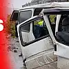 Yağmurdan kayan minibüs direğe ve ağaca çarptı