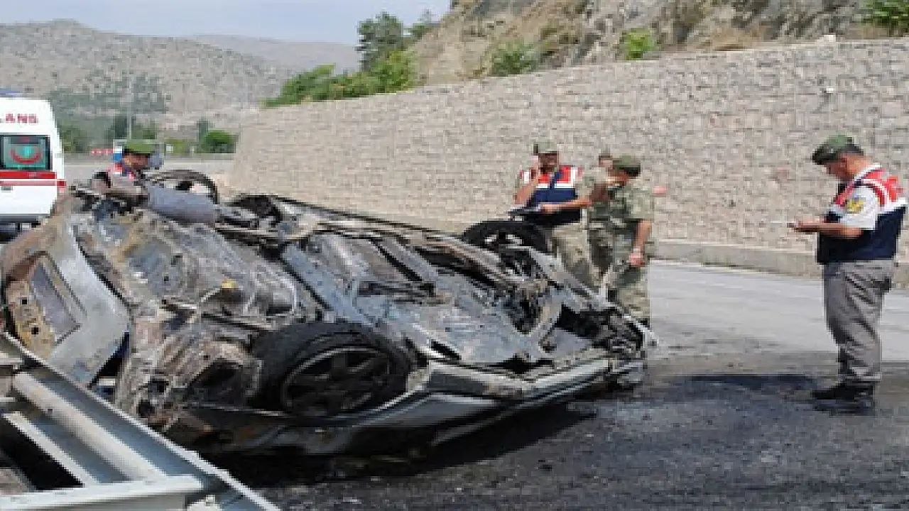 Amasya'da yanan otomobildeki bir kişi feci şekilde can verdi.