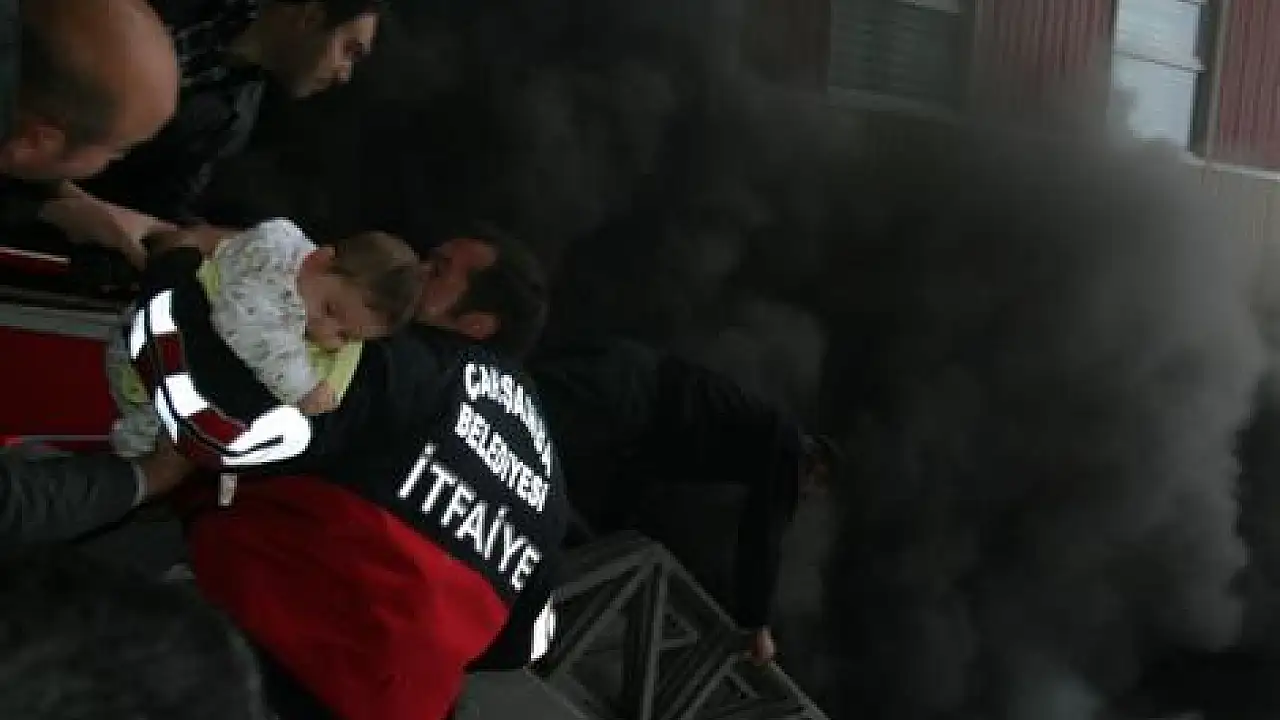 Anne ile kızı yaralanmadan binadan çıkarıldı