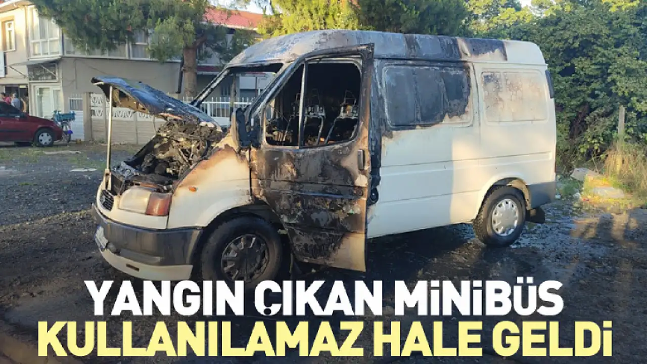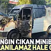 Yangın çıkan minibüs kullanılamaz hale geldi