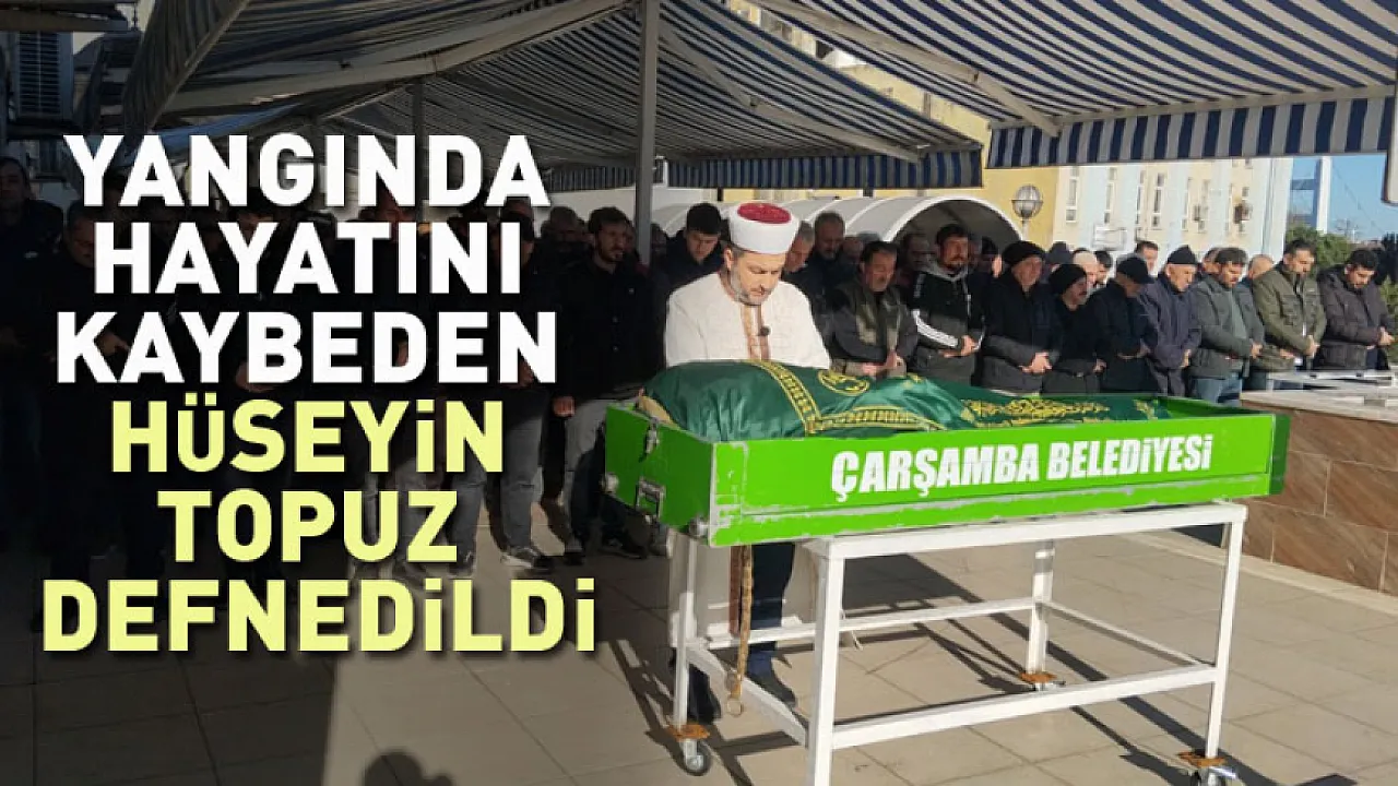 Samsun'un Çarşamba ilçesinde iki katlı müstakil bir evde çıkan yangında hayatını kaybeden Hüseyin Topuz, toprağa verildi.