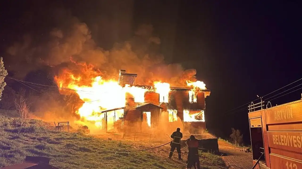 Artvin'de çıkan yangında iki katlı ahşap ev kullanılamaz hale geldi.