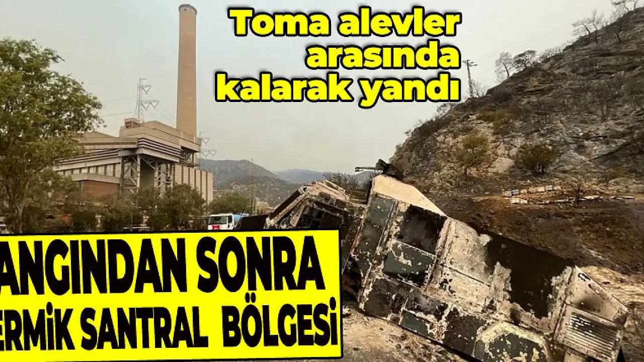 Dün gece boşaltılan Termik Santral ve çevresindeki acı tablo gün ağarınca daha net ortaya çıktı. Alevlerin termik santrale sıçramasından sonra bölgeye çok sayıda itfaiye ve iş makinası sevk edilmişti.
