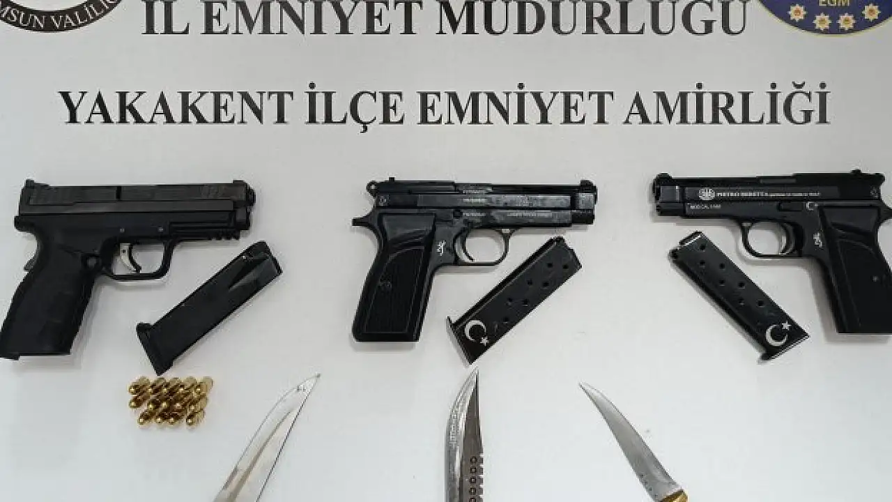 Yakakent ilçesinde 2 araçta yapılan aramada 3 ruhsatsız tabanca ele geçirildi. Alınan bilgiye göre, polis ekiplerince yapılan yol uygulamasında iki araçta arama yapıldı. Aramada 3 ruhsatsız tabanca, 14 fişek ve 3 bıçak ele geçirildi. Araç sürücüleri hakkında adli işlem başlatıldı.