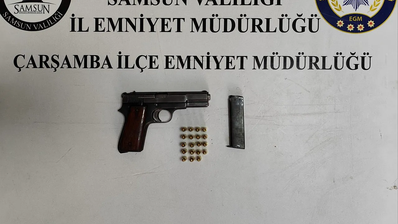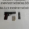Yapılan aramada 1 adet 7,65 mm çapında ruhsatsız tabanca ile 19 adet fişek ele geçirildi.