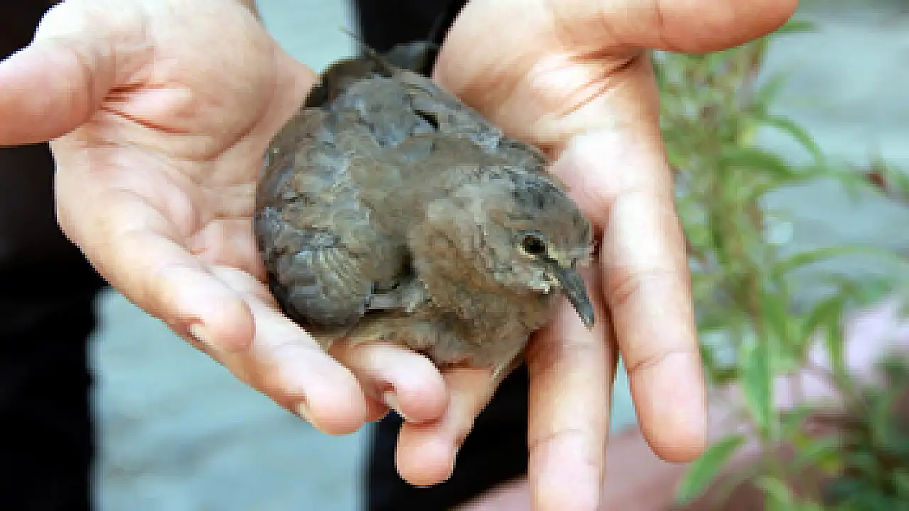 samsun'da yuvasından düşerek yaralanan yavru güvercine esnaflar sahip çıktı.