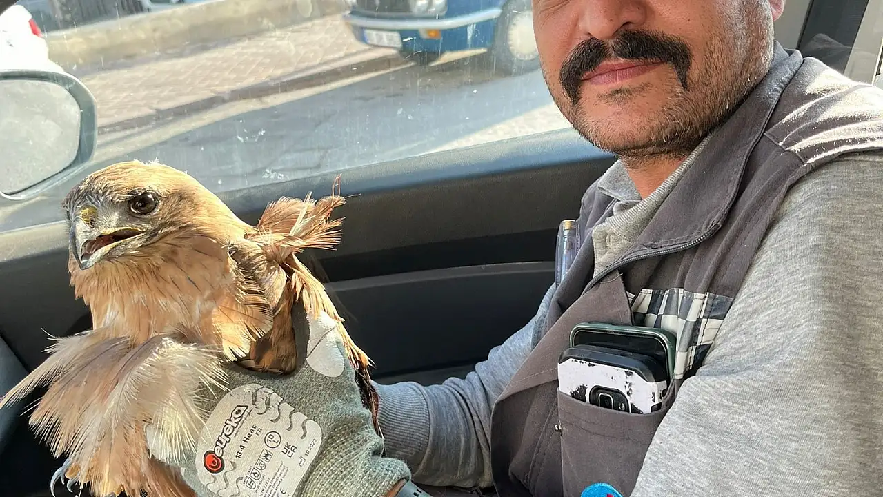 Edinilen bilgiye göre, elektrik dağıtım mobil ekip personeli bir vatandaş görev yaptığı sırada yaralı bir şahin buldu.