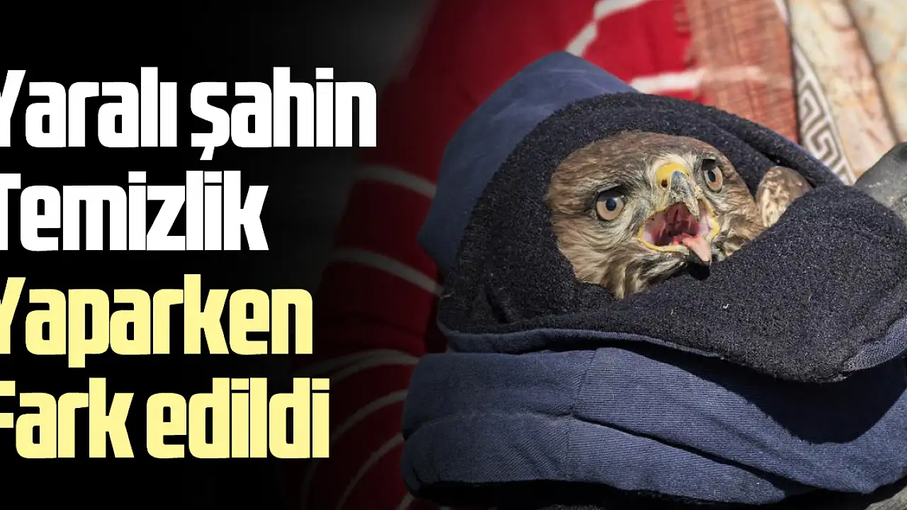 yaralı şahini temizlik yaparken fark edildi