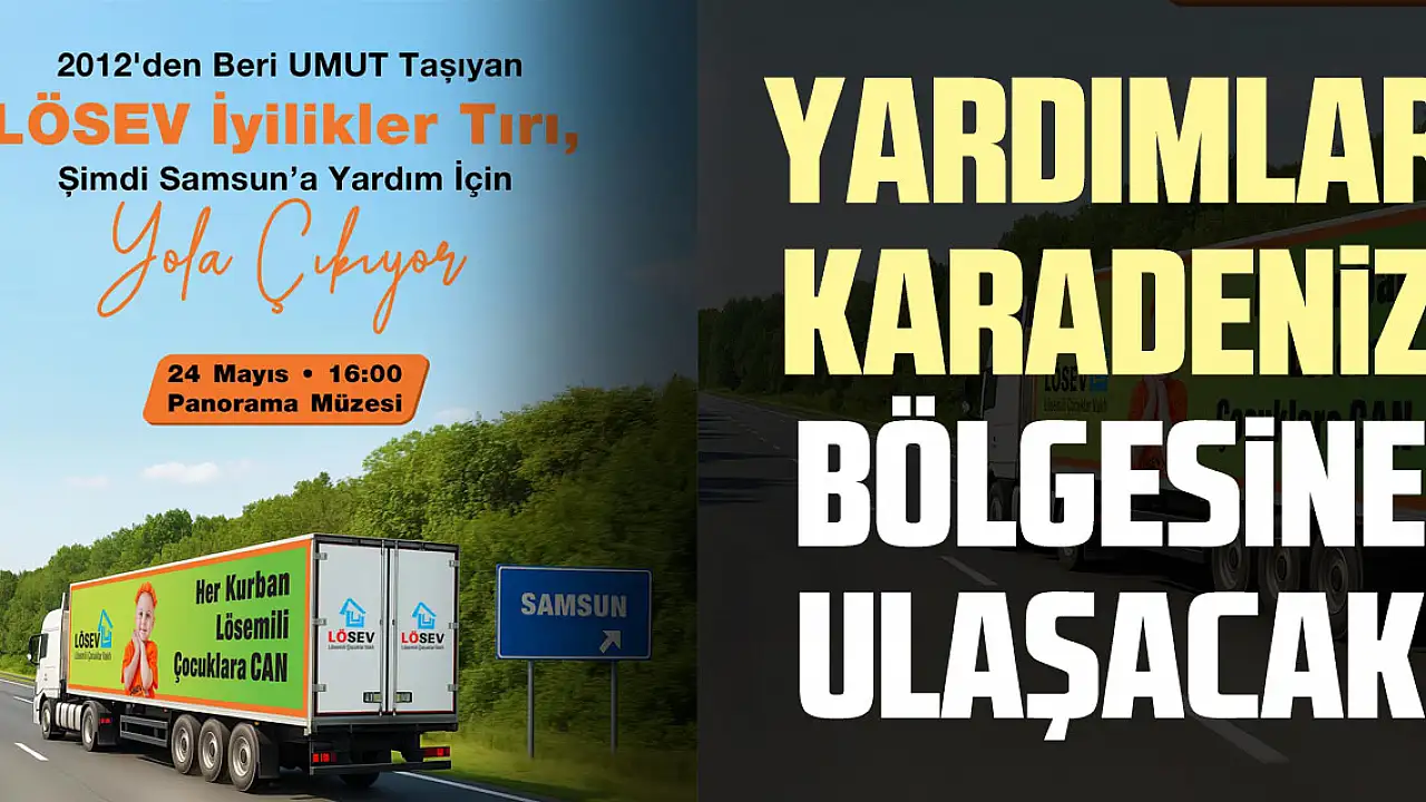 Lösemi ve kanser ile mücadele eden ailelere yardımlar ulaştıran LÖSEV İyilikler Tırı bu kez Karadeniz Bölgesinde bulunan illere doğru yola çıkacak.Samsun ve Ordu'ya yardım ulaştıracak İyilikler Tırının son durağı ise Trabzon olacak.