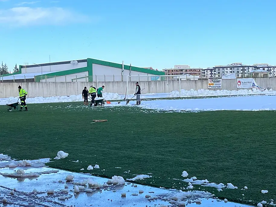 Çarşamba Spor Stadı'nda biriken karlar, yarın oynanacak maç öncesi temizleniyor. Çarşamba İlçe Gençlik ve Spor Müdürlüğü personeli ile Çarşamba Belediyesi Temizlik İşleri ekipleri, toplamda 30'u aşkın personelle saha ve çevresinde hummalı bir çalışma yürütüyor. Özellikle 'böcek' adı verilen küçük kepçelerle karların temizlenmesine öncelik veriliyor.