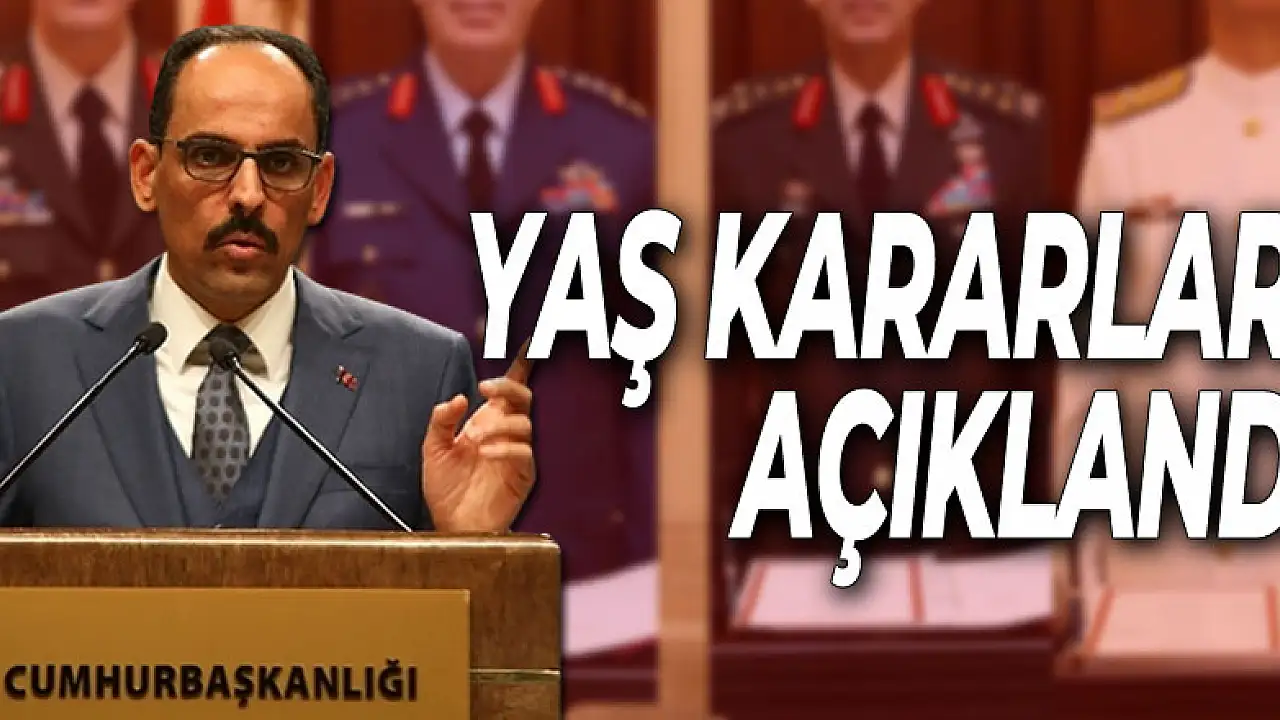Cumhurbaşkanı Recep Tayyip Erdoğan'ın başkanlığında toplanan Yüksek Askeri Şura (YAŞ) toplantısında alınan kararlar açıklandı. Kararlara göre, 17 general ve amiral bir üst rütbeye, 56 albay ise general ve amiralliğe yükseltildi. Ayrıca 44 general ve amira