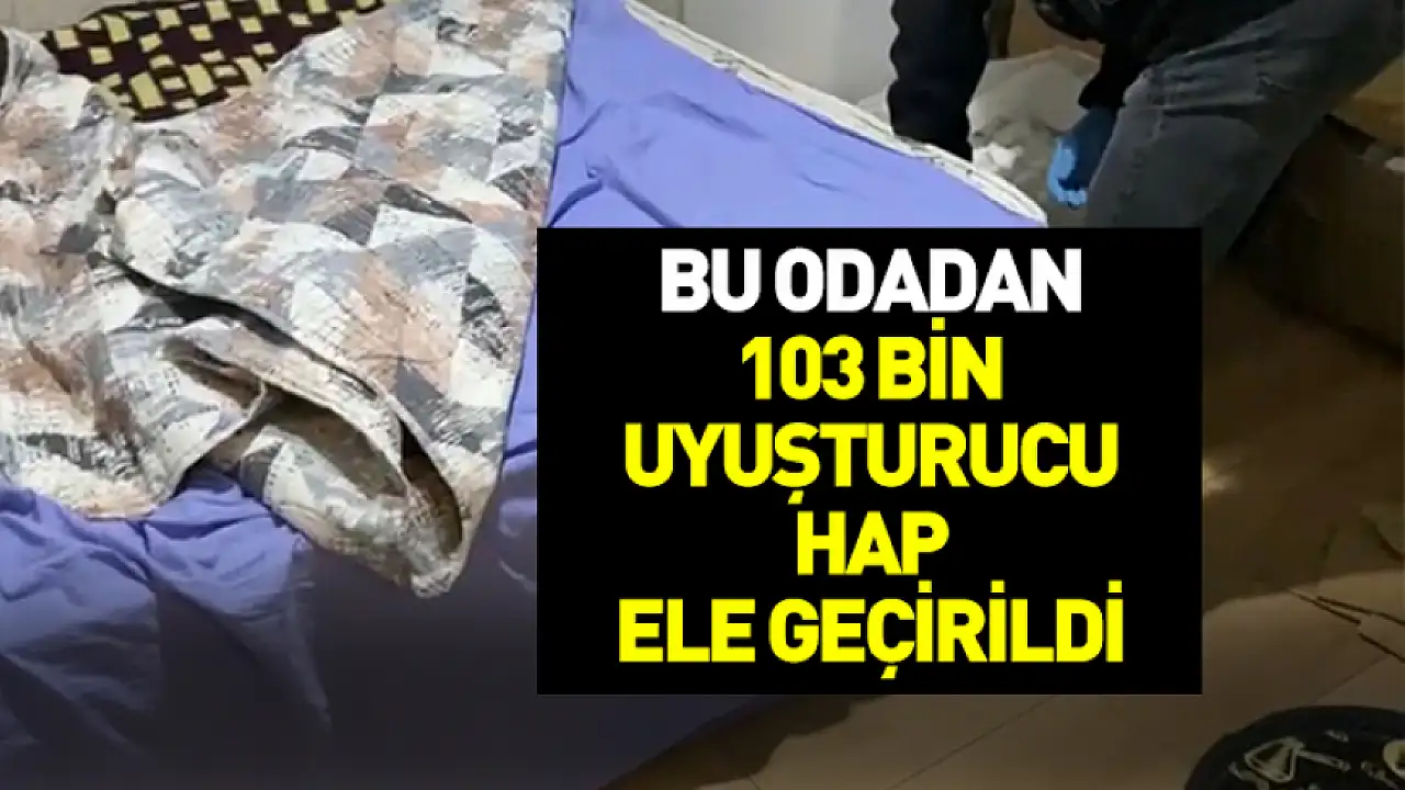 Polis tarafından düzenlenen operasyonda bir evin yatak odasında 103 bin 308 adet uyuşturucu hap ele geçirildi.
