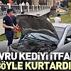 Olay, saat 12.00 sıralarında Çarşamba İlçesi Zübeyde Hanım Meydanı’nda meydana geldi. Park halindeki bir otomobilin altına giren yavru kedinin sesini duyan çevredeki vatandaşlar, ilk olarak kendi imkanlarıyla kediyi kurtarmaya çalıştı. Ancak vatandaşlardan korkan kedi, arabanın motor kısmına doğru kaçtı.