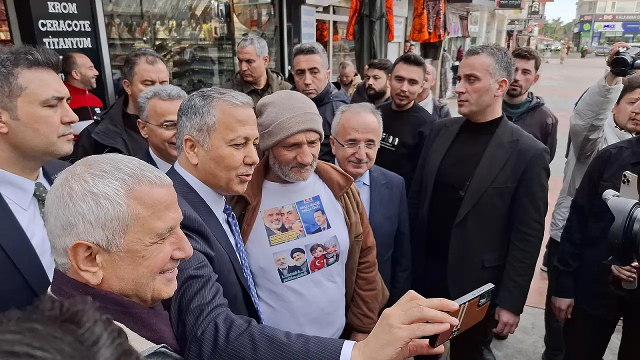 Ziyaret sırasında tişörtünde Cumhurbaşkanı Recep Tayyip Erdoğan’ın fotoğrafı bulunan bir vatandaşla da diyaloga giren Bakan Yerlikaya, “Kalbine kazmışsın” diyerek selfi çekindi.