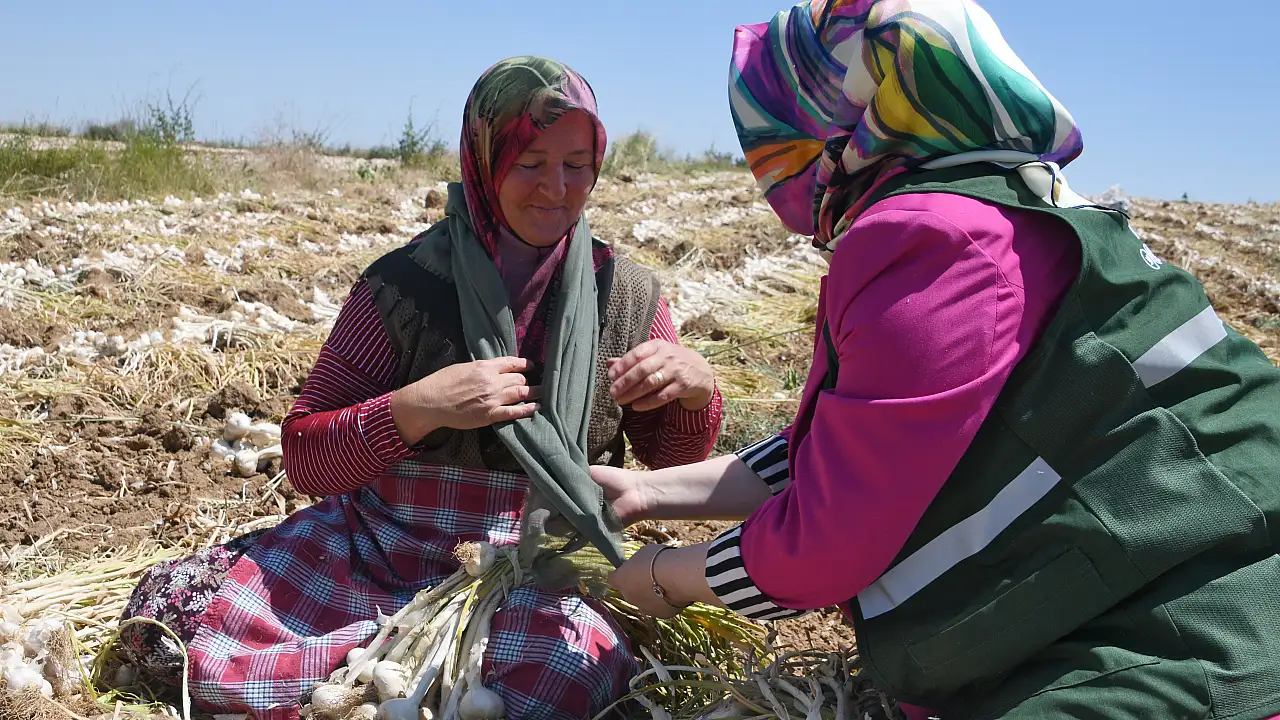 Emekçi kadınlarla bir araya geldiklerini anlatan Durgut, "Annelerimizin, emekçi kadınlarımızın rolünün çok büyük olduğunu düşünerek sarımsak tarlasında emek harcayan kadınlarımızı Yeşilay olarak ziyaret etmeyi düşündük. Kendilerine broşürlerimizden ve yeşil yazmalar getirdik, bir anı, hatıra kalsın diye." diye konuştu.