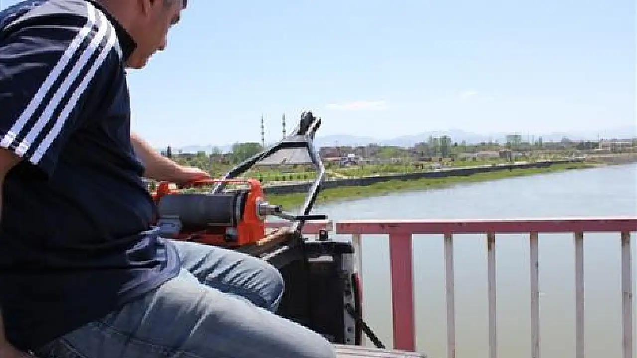 Çarşamba Yeşilırmak üzerinde Devlet Su İşlerine (DSİ) bağlı mühendisler suyun debisini ölçerek incelemede bulundular